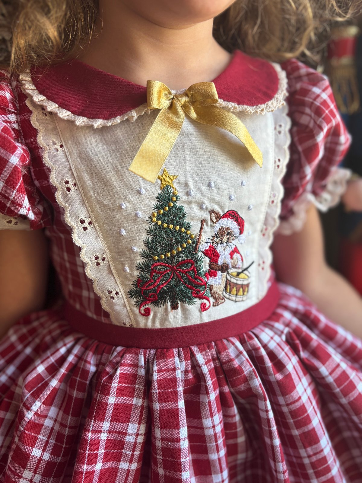 Dress is made from 100% Cotton with machine embroidary and ribbon detail on the bodice.